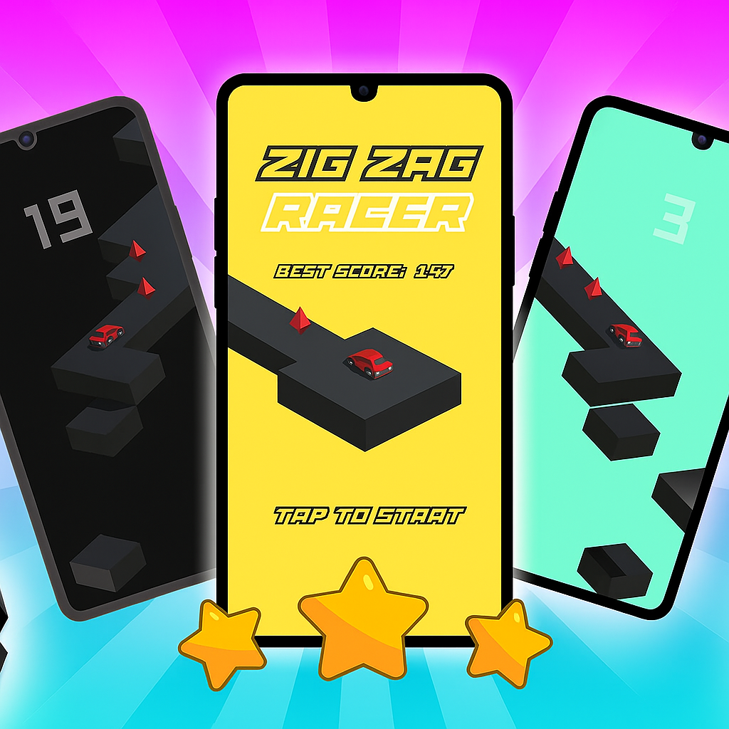 Zigzag Racer is a fast-paced hyper-casual game where your reflexes are everything. Tap to change direction, keep your car on the track, and see how far you can go!